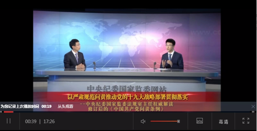 郑瑜同志首先组织大家学习了《中国共产党问责条例》专家解读视频,指出严明组织纪律,严守政治规矩,是当前我们党员学习贯彻习近平新时代中国特色社会主义思想的抓手。