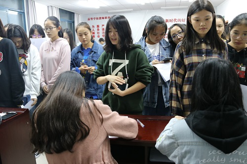 在会场主持人热烈地欢迎了大家的到来并宣布了面试流程后,招新活动正式开始。本次招新面试共分为竞选者自我介绍、工作了解和实践部成员提问三个环节,所有竞选者有序分成六列,耐心排队等待面试。在面试过程中,有些同学稍显稚嫩、紧张,但大部分同学都能镇定自若,并灵活运用时间介绍自己、展现自己,认真地回答面试官一次又一次的提问。面试官们则认真倾听、多面提问、并耐心记录,以便进一步了解竞选者综合能力,给出公正的评分。待所有竞选者面试完毕,本次活动圆满结束。