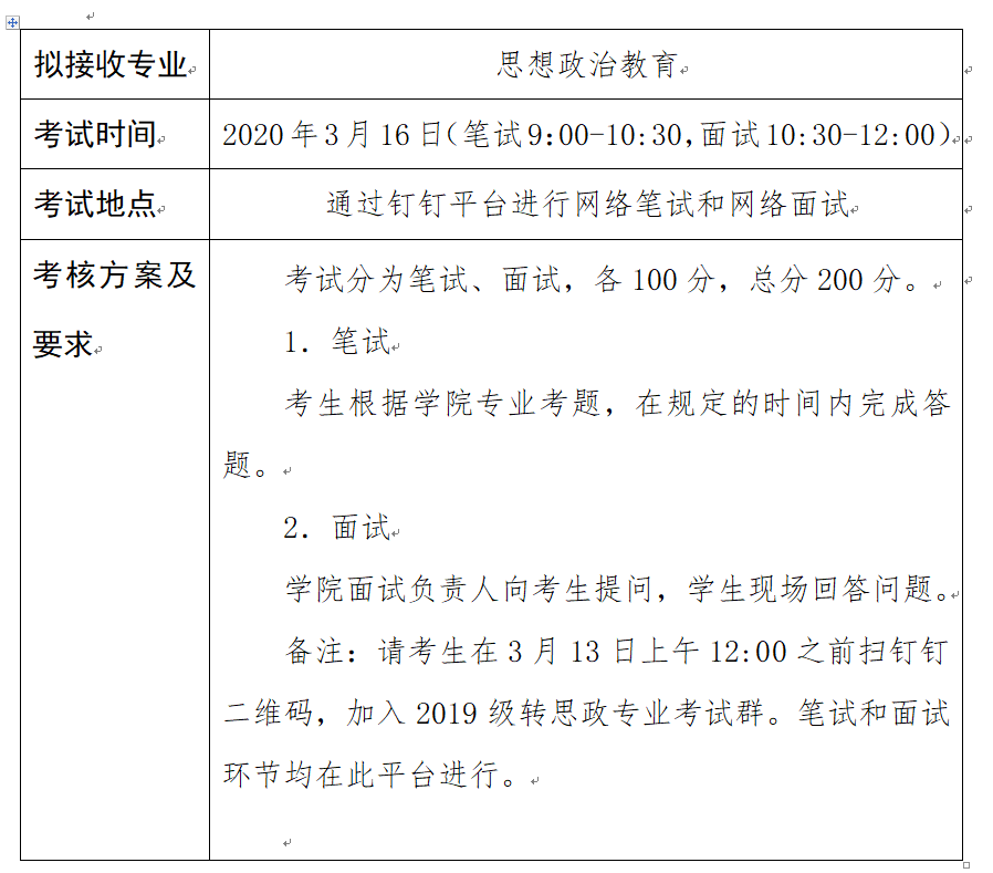 91自拍论坛 2019-2020学年转专业考试安排表