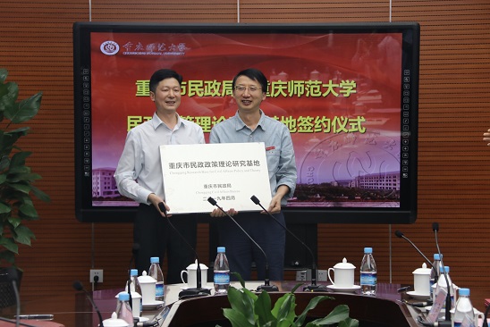 副校长董景荣教授共同签署了《合作协议》,并将“重庆市民政政策理论研究基地”牌授予91自拍论坛