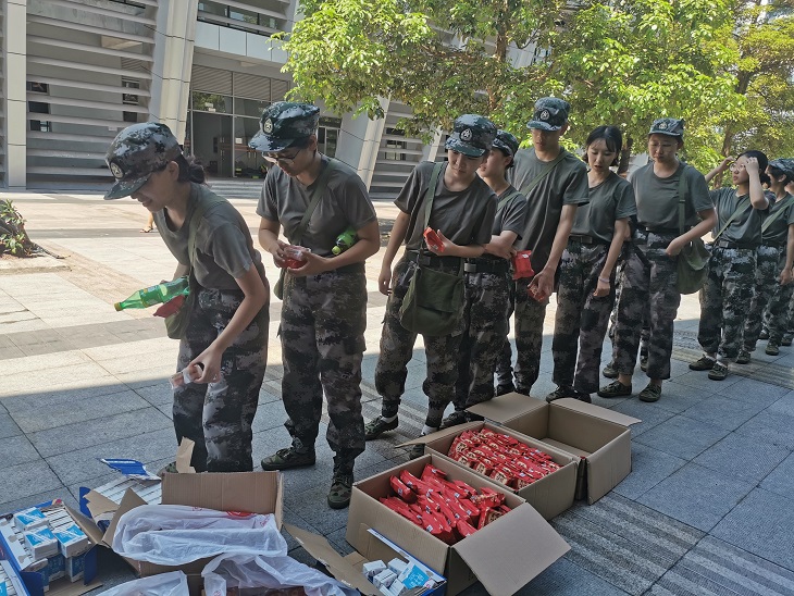 12时,此次慰问活动在学院领导为新生们一一送上了代表着学院对19级新生满满的中秋祝福与军训慰问的礼物中以及同学们的欢声笑语中圆满结束。此次学院领导的亲切慰问在给予不畏酷暑、积极训练的19级新生信心与力量的同时,也让他们感受到了来自学院的关怀与重视。希望2019级新生在接下来的训练中团结协作,继续发挥吃苦耐劳的精神,展现马院人的风采。最后,预祝2019级同学在军训汇演中凯旋。