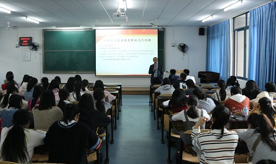 特于砺志楼2302教室开展理想信念教育活动。本次活动邀请到学院党委书记刘军宣讲,2018级全体同学积极参与。