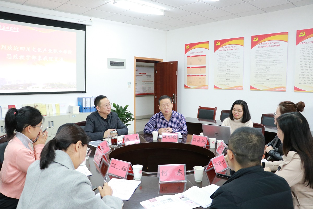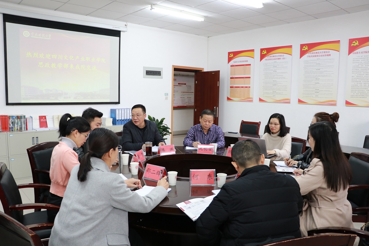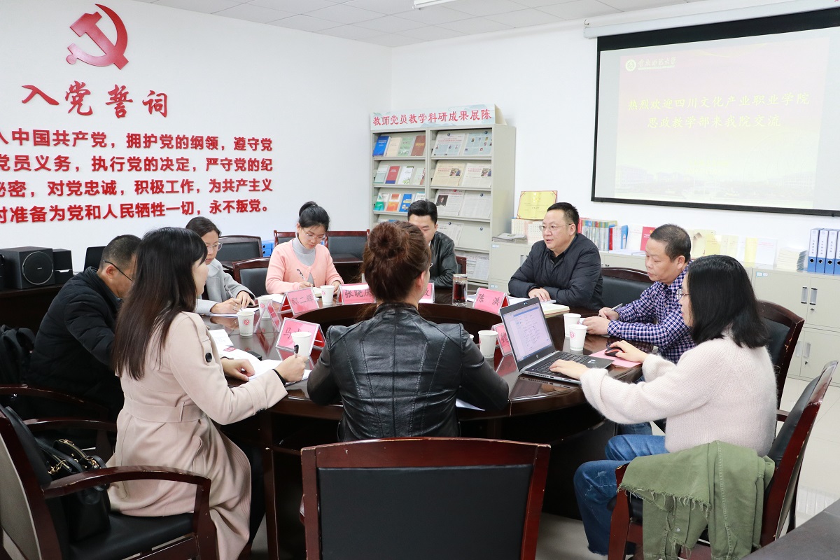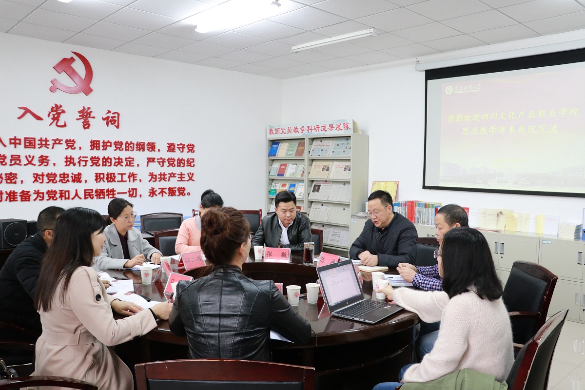2019年11月8日下午3点,四川文化产业职业学院思政教学部负责人马吉宏、“概论”教研室主任何东、“形势与政策”教研室主任孙世欣来91自拍论坛