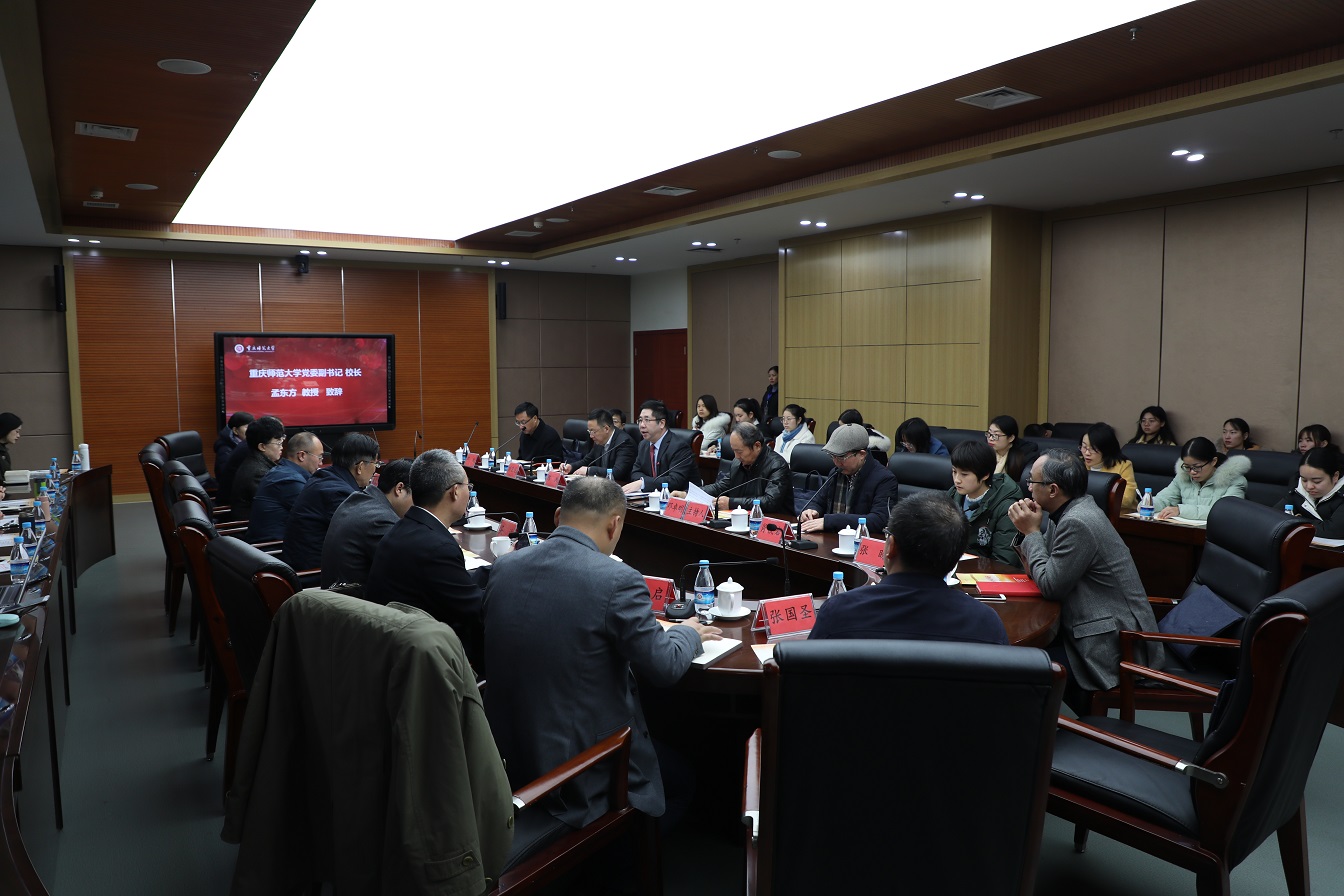 等高校的专家学者汇聚一堂,就新时代如何提升思想政治教育质量、如何构建科学有效的思想政治教育质量评价体系进行了深入探讨和交流。中共重庆市委教育工委、市教委宣教处处长吴边,我校校长孟东方教授到会祝贺论坛召开并致辞,中国教育发展战略学会思想道德专业委员会理事长冯刚教授代表主办单位讲话,91自拍论坛
