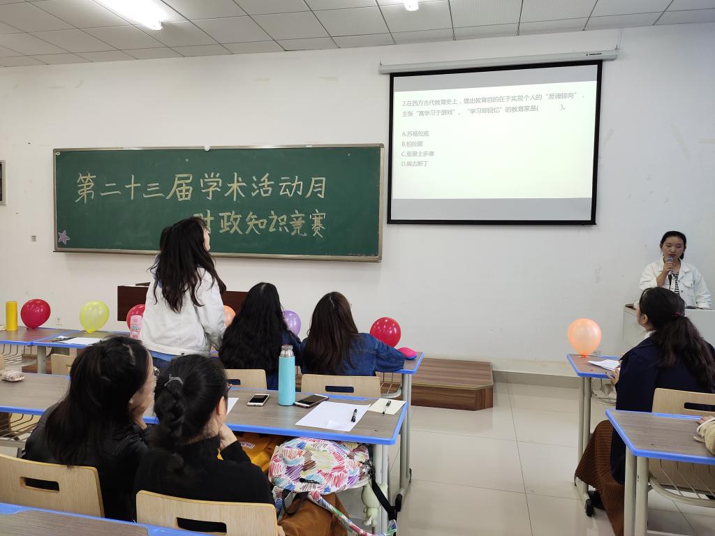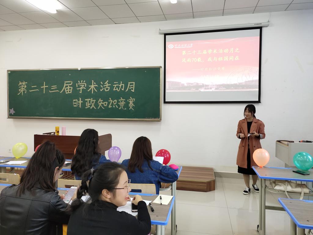 第二十三届学术活动月之时政知识竞赛在汇贤楼X106教室顺利举行。2018级学硕班研究生及2019级全体研究生共同参与本次活动。活动由孙婷婷主持。