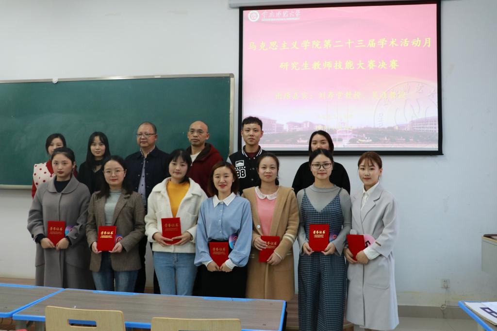 “三寸粉笔,三尺讲台系国运;一颗丹心,一生秉烛铸民魂。”在大家的翘首期盼中,91自拍论坛 第二十三届学术活动月研究生教师技能大赛决赛如期举行。2019年11月14日下午2:30至5:00,十位选手于汇贤楼X106教室给同学们带来了一场别开生面的教学盛宴,本次比赛特别荣幸地邀请到刘寿堂教授和吴涯副教授担任专家评委。比赛由蔡淋芬主持。