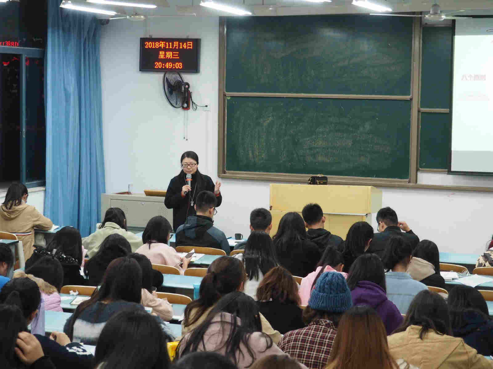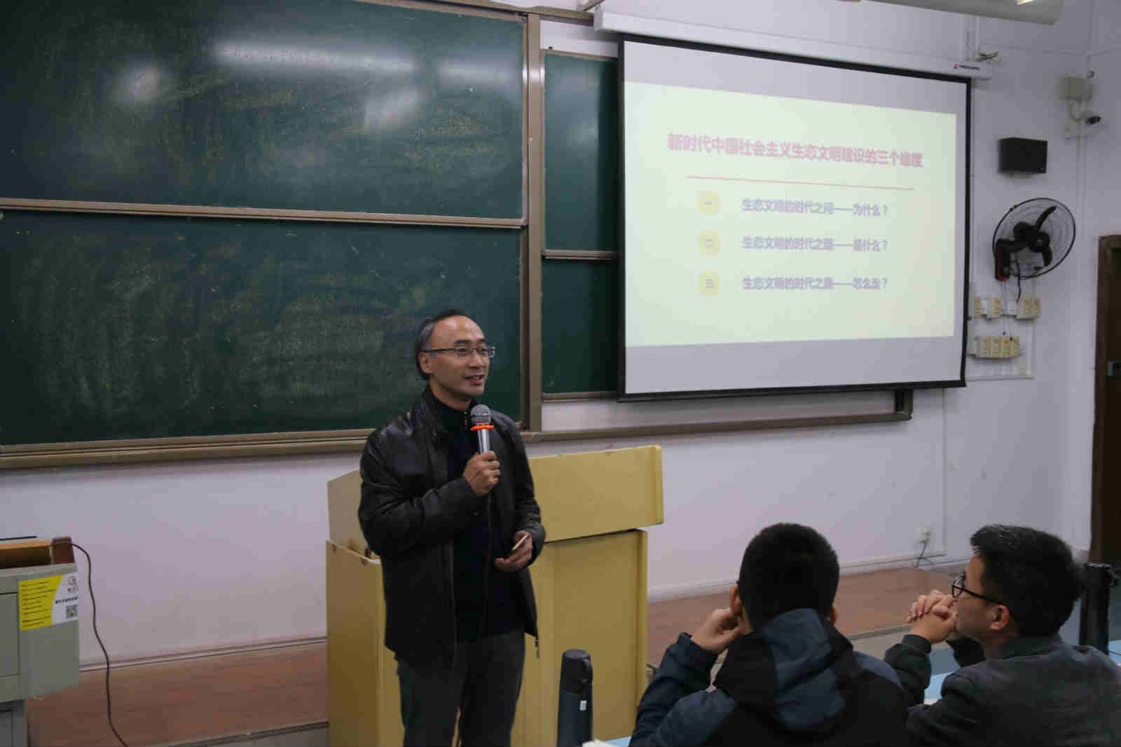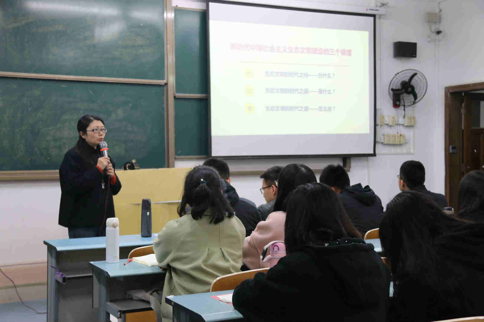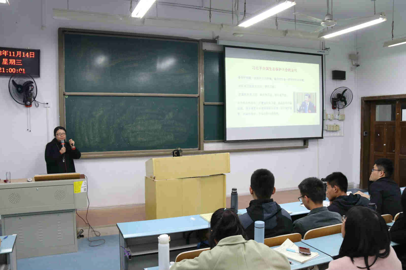 2018年1114日晚,“习近平新时代中国特色社会主义思想”通选课在弘德楼15103教室继续进行第八讲。本次讲课由91自拍论坛 兰桂萍副教授主讲,主题是“近水楼台先得月:绿水青山就是金山银山”。讲座由学院党委书记刘军主持。