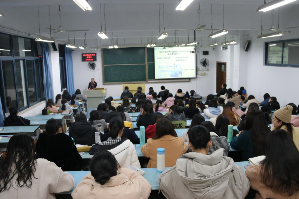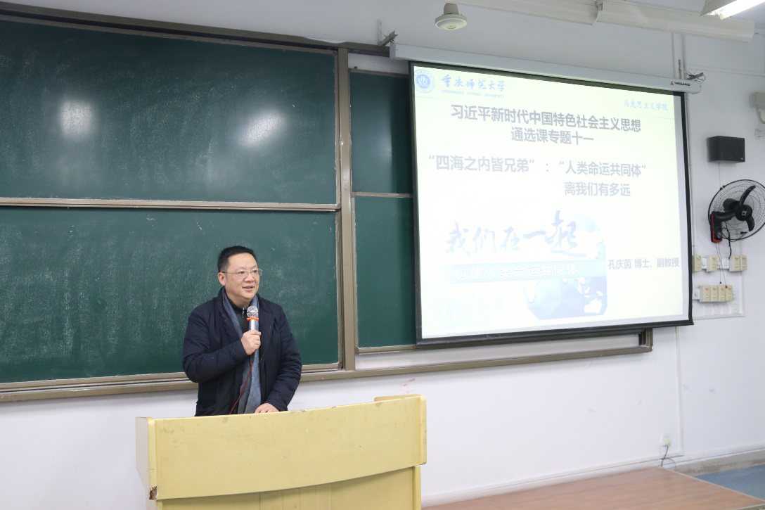 思想政治理论课教研部主任孔庆茵副教授主讲,主题是“四海之内皆兄弟”:“人类命运共同体离我们有多远”。讲座由学院院长陈洪主持。