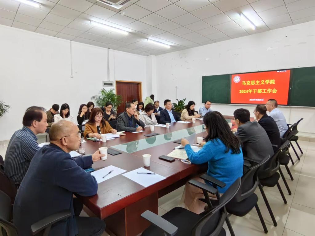 李晓燕书记代表班子从党建思想稳定提升、学科建设成效明显、科研成果取得标志性成果、人才队伍建设取得新的突破、人才培养质量有提升、思政课教师队伍有新发展、学院态势向上向好等七个方面向与会干部总结了新一届班子履职两年多来与全院师生共同奋斗努力所取得的成绩,同时实事求是的分析了学院发展存在的问题,并从党建要塑品牌、学科要突破、人才队伍要优质、人才培养要夯实、思政课要铸牢、全员要参与、生态要稳定等方面提出了学院发展下一步工作重点。他强调:2024年是学院发展关键的一年,同时面临诸多挑战,在座参会的每一位中层干部都是学院发展的“关键少数”,是学院发展的中坚力量,希望大家积极参与学院内部治理和新阶段事业发展,补短板,塑形象,创建马院更加美好的明天。