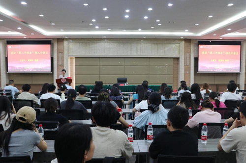 最后,张艳书记作总结发言。她高度肯定张国祚教授的学术分享,指出这场讲座不仅展现出深厚理论功底,并让百年经典理论焕发时代生机。张艳书记分享了三点核心认识:第一点,“两个结合”的生成逻辑根植于对中华文明“博大精深、源远流长”特质的深度认知,必须以“去粗取精、去伪存真”的态度实现传统文化的现代转化;第二点,马克思主义基本原理与中华优秀传统文化存在深层契合,二者互相成就的双向融合既推动马克思主义中国化时代化,更赋予中华文明现代生命力;第三点,“两个结合”的实践成果直接指向民族复兴,唯有通过创造性转化实现传统文化现代化,才能筑牢伟大复兴的文化根基。她以习近平总书记“对历史最好的继承就是创造新的历史、对人类文明最大的礼敬就是创造人类文明新形态”的论断作结,勉励青年学子勇担文化传承使命,在建设中华民族现代文明的征程中书写青春篇章。