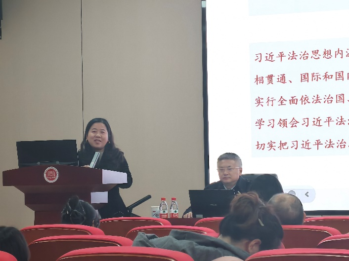 最后,侯玲副院长进行了总结。她指出,唐教授充分运用丰富的资料与大量的现实案例,以史入法、以典入法、以案入法,生动且全面地讲解了习近平法治思想的重要内涵与时代价值,使同学们对这一重要思想有了更为深刻、透彻的理解与认识。