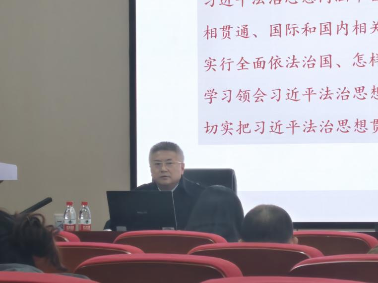 接着,唐青阳教授围绕习近平法治思想的核心要义、习近平法治思想的主要来源与习近平法治思想的实践要求三个方面,对全面依法治国进行了系统解读和深入阐释。他强调,习近平法治思想内容丰富、论述深刻、逻辑严密、系统完备,我们要认真学习习近平法治思想,切实把习近平法治思想贯彻落实到全面依法治国全过程。