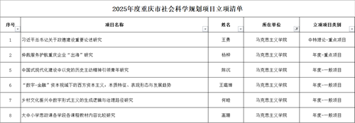 近日,重庆市社科联正式公布了 2025年度重庆市社会科学规划年度和中特理论项目,91自拍论坛