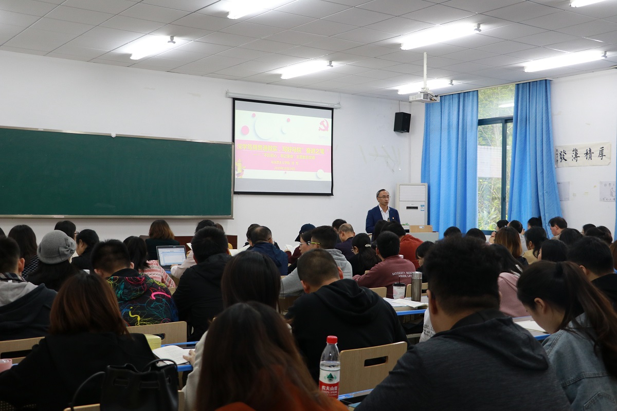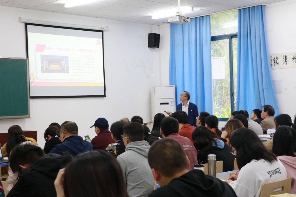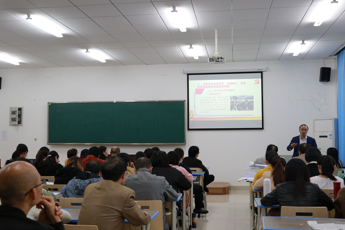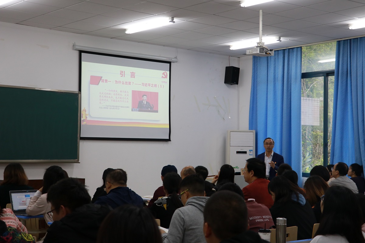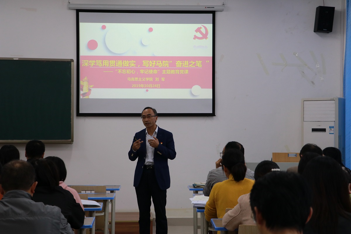 在汇贤楼X106教室开展了“不忘初心、牢记使命”主题教育之书记讲党课活动。党课由学院党委书记刘军主讲,党委副书记陈洪主持,学院全体教职工及学生党员参加了党课学习。