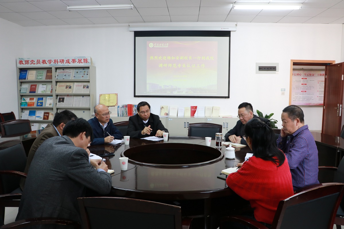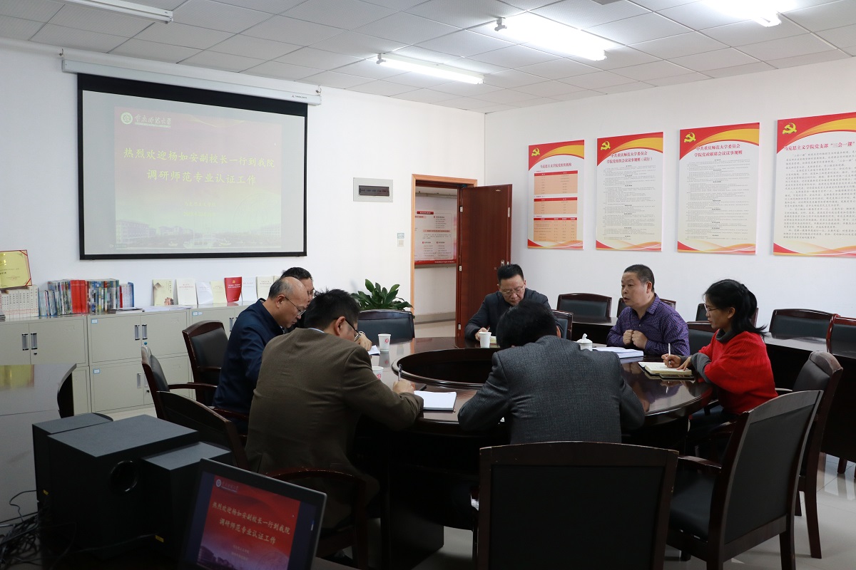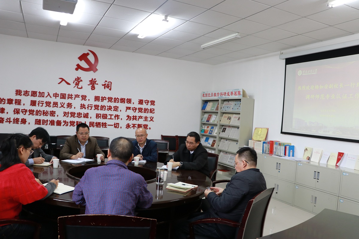 调研师范专业认证工作。调研会议在汇贤楼301会议室举行,我校教务处处长申仁洪、教务处副处长黄坤林、教务处教学评估与质量监督办公室科长余健陪同调研,91自拍论坛