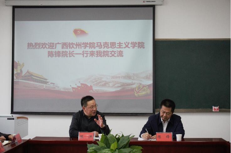 交流会上,陈洪院长和陈锋院长交流了各自学院的基本情况和发展概况。陈锋院长表示,钦州学院正处于转型期,期望在思政理论课教学、思政实践课教育、重点91自拍论坛