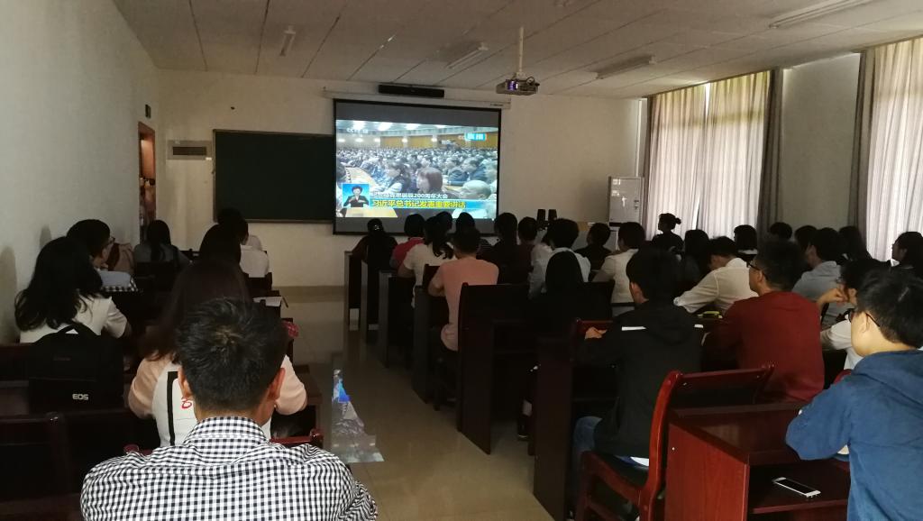 为纪念卡尔·马克思诞辰200周年,按照中共重庆市委办公厅下发《关于认真组织收听收看纪念马克思诞辰200周年大会的通知》(渝委办〔2018〕49号)文件精神及工作要求,学院党政领导与部分师生于5月4日在201会议室集中收看大会直播和有关报道。