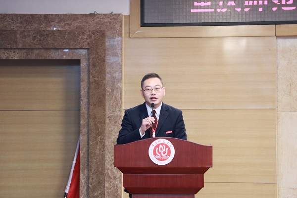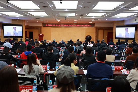 院长陈洪代表全院师生致欢迎辞。陈院长向到场的各位领导、老师和校友代表表示热烈欢迎和由衷感谢。陈院长指出,回首过去,正是有一代代马院人的砥砺前行、接续奋斗,方使学院呈现蓬勃生机,取得累累硕果;立足当下,冀望广大校友以学院校友分会为桥梁,为深化学院改革创新、推动学校内涵发展凝心聚力、添砖加瓦;展望未来,全体重师马院人定当发扬优良传统、不断开拓进取,戮力谱写学院新的篇章、续写学院新的辉煌。