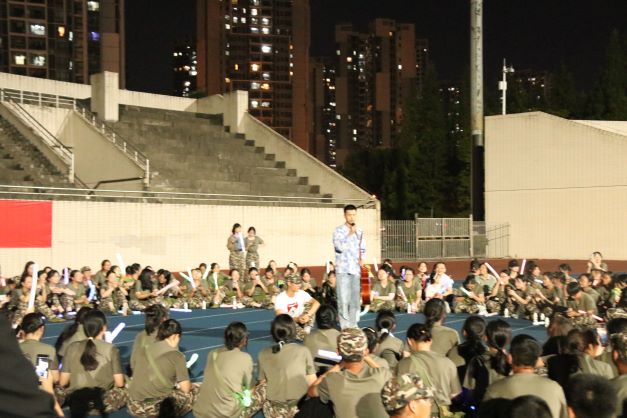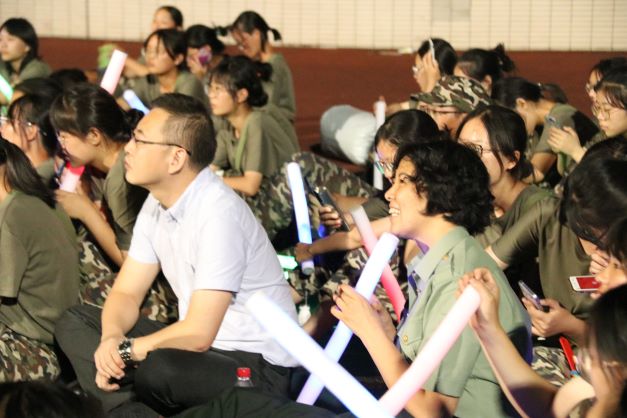 2021年9月21日辛丑中秋佳节之夜,金风荐爽,玉露生凉。学院特此举办军训中秋晚会,院党委副书记方敏、连队指导员马小又、孟平、李海东来到军训场地同全体2021级新生共庆佳节。