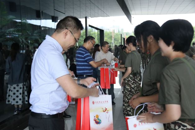2021年9月18日17时,学院党委书记刘军、党委副书记方敏、副院长况明安来到体育场看望慰问2021级军训新生。