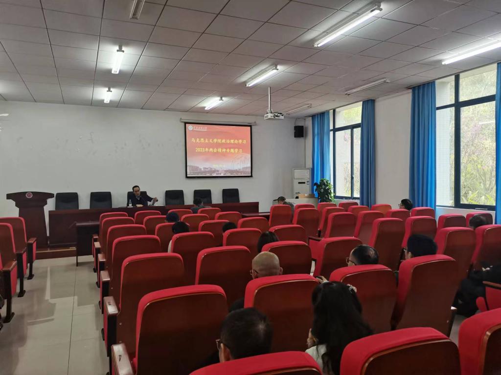 最后,李书记向全院教职工提出持续深入学习两会精神的要求:一是希望教职工党员带动学生党员通过多种形式进一步学习领会两会精神,形成一批有影响力的理论学习成果。二是希望老师们采取集中学习+自主拓展学习的形式继续加强两会精神的学习,并将精神融入我们的教育教学、教书育人工作,与实际岗位工作对接起来,抓好理解,抓好贯彻,抓好践行。三是希望大家以学习两会精神为契机,把学习贯彻党的二十大精神不断引向深入,系统谋划,有序推进学院申博立项工作和教学科研中心任务。
