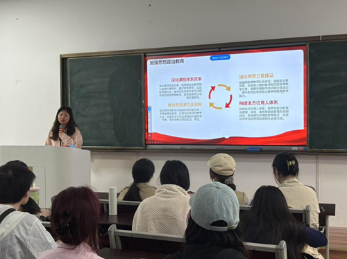 活动伊始,支部书记谭景文同志带领全体党员深入学习全国教育大会精神、重庆市教育大会精神、《教育强国建设规划纲要》(2024-2035)。她强调党员同志要认真领悟中国特色社会主义教育强国具备的六大特质:思政引领力、人才竞争力、科技支撑力、民生保障力、社会协同力以及国际影响力。同时,她明确要求支部党员作为未来的思政课教师,必须紧紧围绕立德树人根本任务,以培养德智体美劳全面发展的社会主义建设者和接班人为目标,浇花浇根、育人育心。