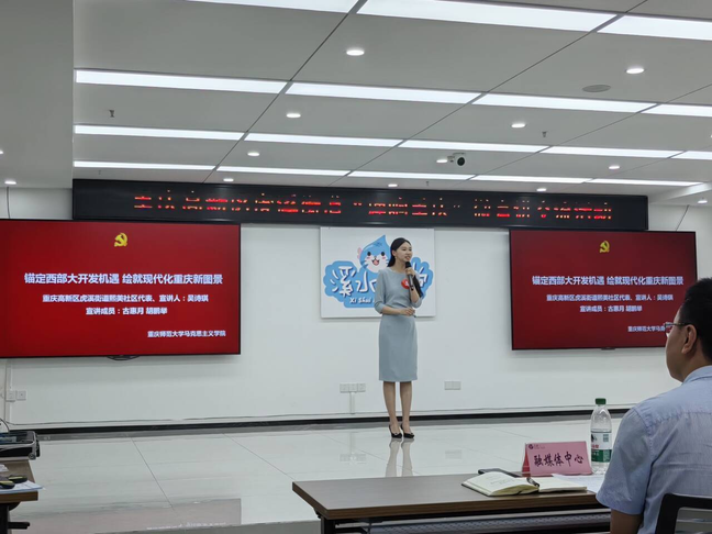 “概论”教研室党支部发挥党员教师党的理论教学研究和武装优势,联合熙美社区党支部,推出“深悟习近平文化思想 筑牢文化自信根基”“锚定西部大开发机遇 绘就现代化重庆新图景”两组微宣讲。