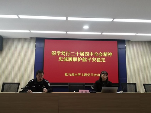 “概论”教研室党支部郑瑜书记在重庆市公安局北碚区分局歇马派出所开展党的二十届四中全会精神主题宣讲,帮助派出所党员同志精准把握全会精神的核心要义、实践要求,进一步激发奋进力量。宣讲活动由歇马派出所王廷华所长主持,歇马派出所党支部全体党员同志、“概论”教研室党支部支委成员参加。