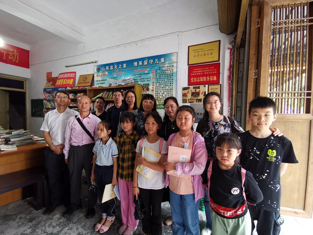 2021年6月19日,在中国共产党成立100周年即将来临之际,毛中特党支部的同志们来到忠县石宝镇蓝天留守儿童公益书屋看望孩子们。同志们不仅用自己的学习故事、成长故事鼓励孩子们好好学习;而且,还给孩子们送上图书《伟大是怎样炼成的》,用实事求是、生动活泼的中国共产党的故事,引导孩子们健康成长。
