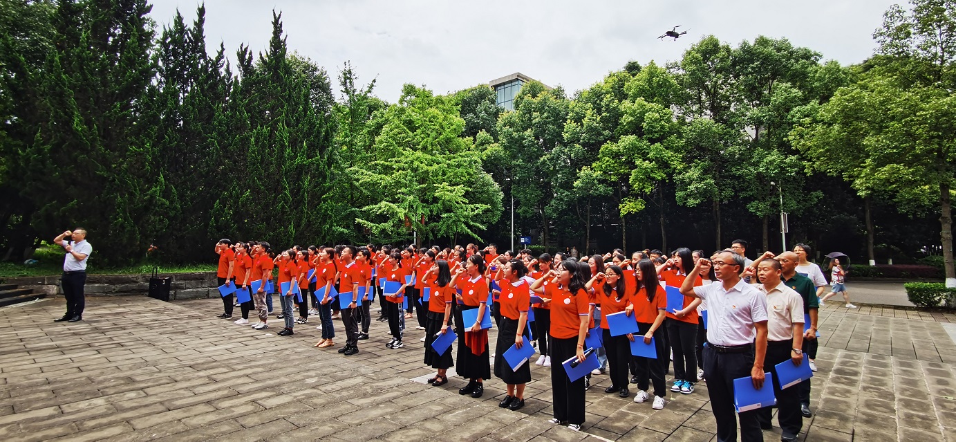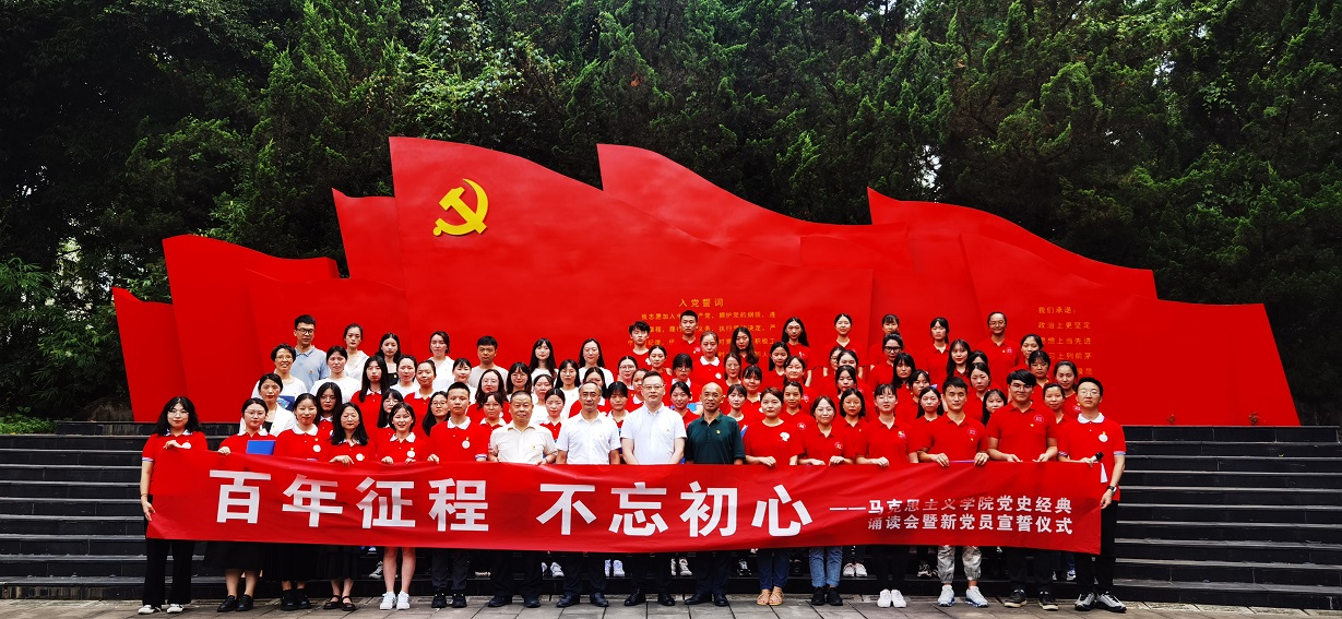 党委组织学生第一党支部、学生第二党支部、研究生党支部全体党员在学校党员承诺墙前举行了神圣而庄严的名为“百年征程,不忘初心”主题的党史经典诵读会暨新党员宣誓仪式。