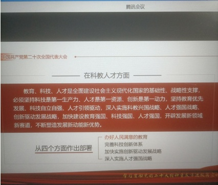 2022年11月24日14:00,“思法”支部利用腾讯会议开展二十大精神宣讲学习活动。支部书记杨桦同志围绕党的二十大报告的主题,为全体成员带来了一堂生动的高质量党课。