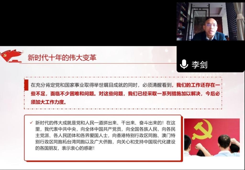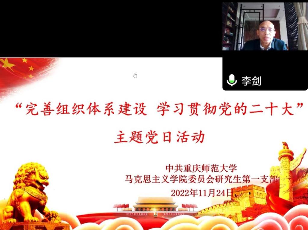 研究生第一支部通过腾讯会议平台开展云端以“完善组织体系建设,学习贯彻党的二十大”为主题的党日活动,会议由支部书记李剑同志主持。
