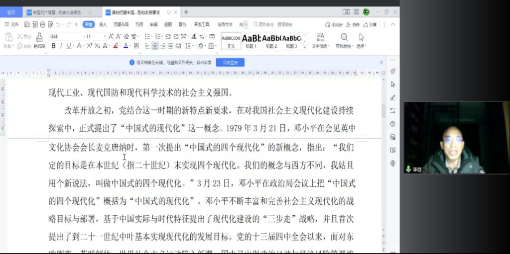 最后,支部书记李剑同志作总结发言,他提到当前的我们正处于中国式现代化这个时代中,我们是见证者、参与者。国家的日益强盛离不开我们党,中国式现代化的离不开党,党的领导不可缺。