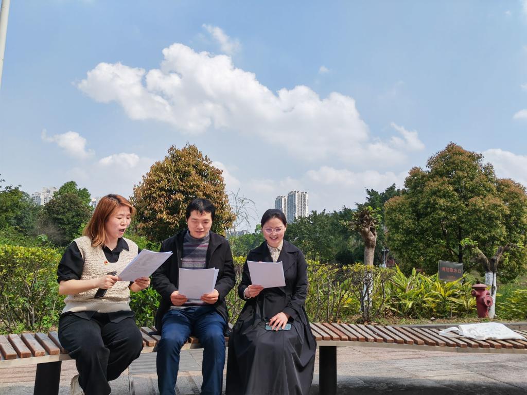 2023年3月30日下午,“概论”教研室党支部在学院楼106会议室组织召开支部党员大会,开展3月主题党日活动,继续深入学习党的二十大和2023年全国两会精神。首先,支部书记郑瑜同志简要介绍了本次学习的主要内容,包括党的二十大报告、习近平总书记在两会期间的系列重要讲话及《政府工作报告》等,号召党员同志们结合教学科研实际深入开展学习研究,在提高思政课教学效果的同时,争取多出大成果、好成果。随后,全体党员同志按照分组,走出会议室,在校园里深入开展学习心得交流。大家纷纷表示,要把时效性、准确性、生动性结合在一起,牢牢把握为党育人,为国育才的目的,让二十大和全国两会精神冒着热气、带着温度,走进思政课堂,深入学生心里。