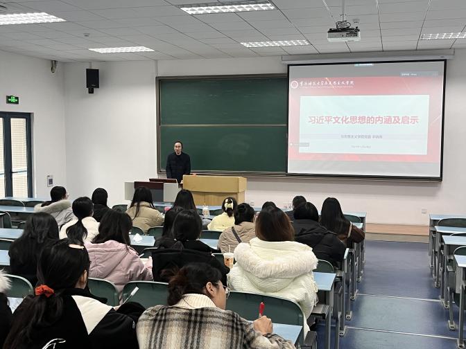 本次党课有四个部分的内容,第一部分介绍了习近平文化思想的提出及其背景,第二部分讲解了习近平文化思想的深刻内涵,第三部分分析了习近平文化思想的主要内容,最后围绕习近平文化思想谈了现实启示。李书记要求全体党员同志以此次活动为契机,从自身专业学习出发,深刻把握习近平文化思想的时代背景、丰富内涵、具体内容和实践要求,加强对习近平文化思想的研究阐释,形成一系列研究成果。