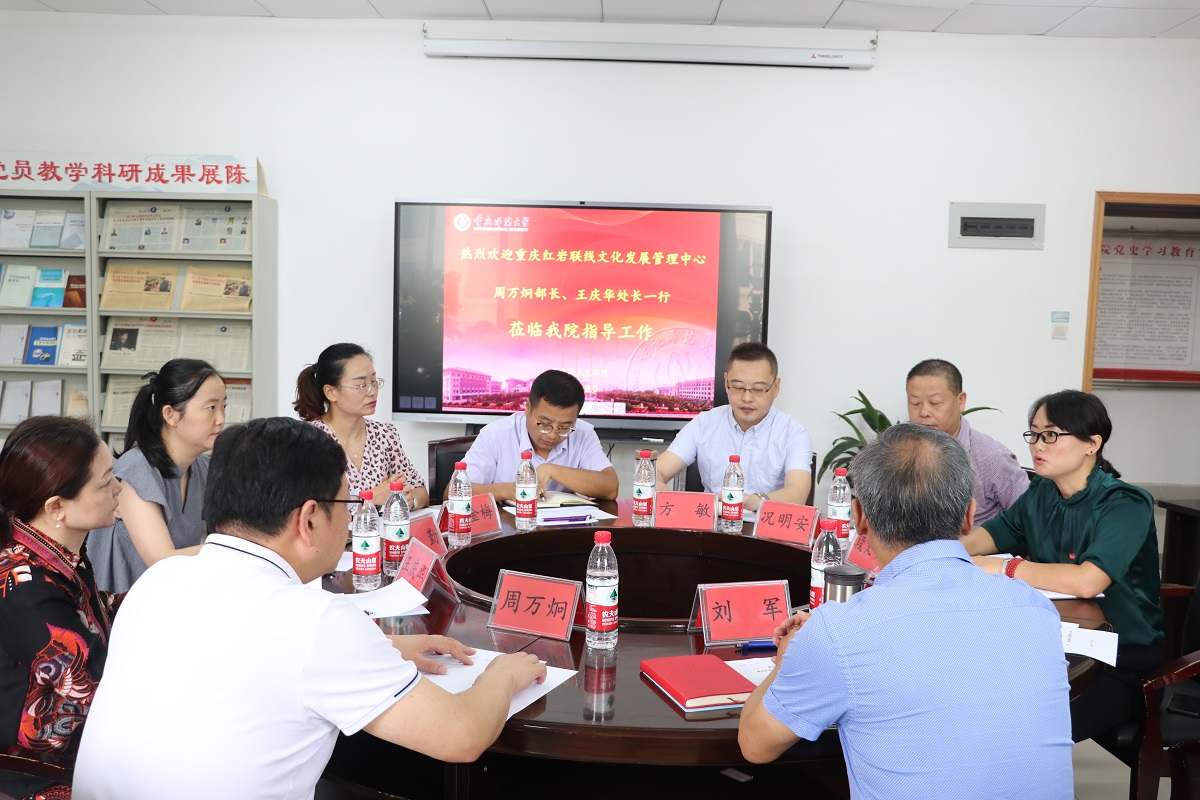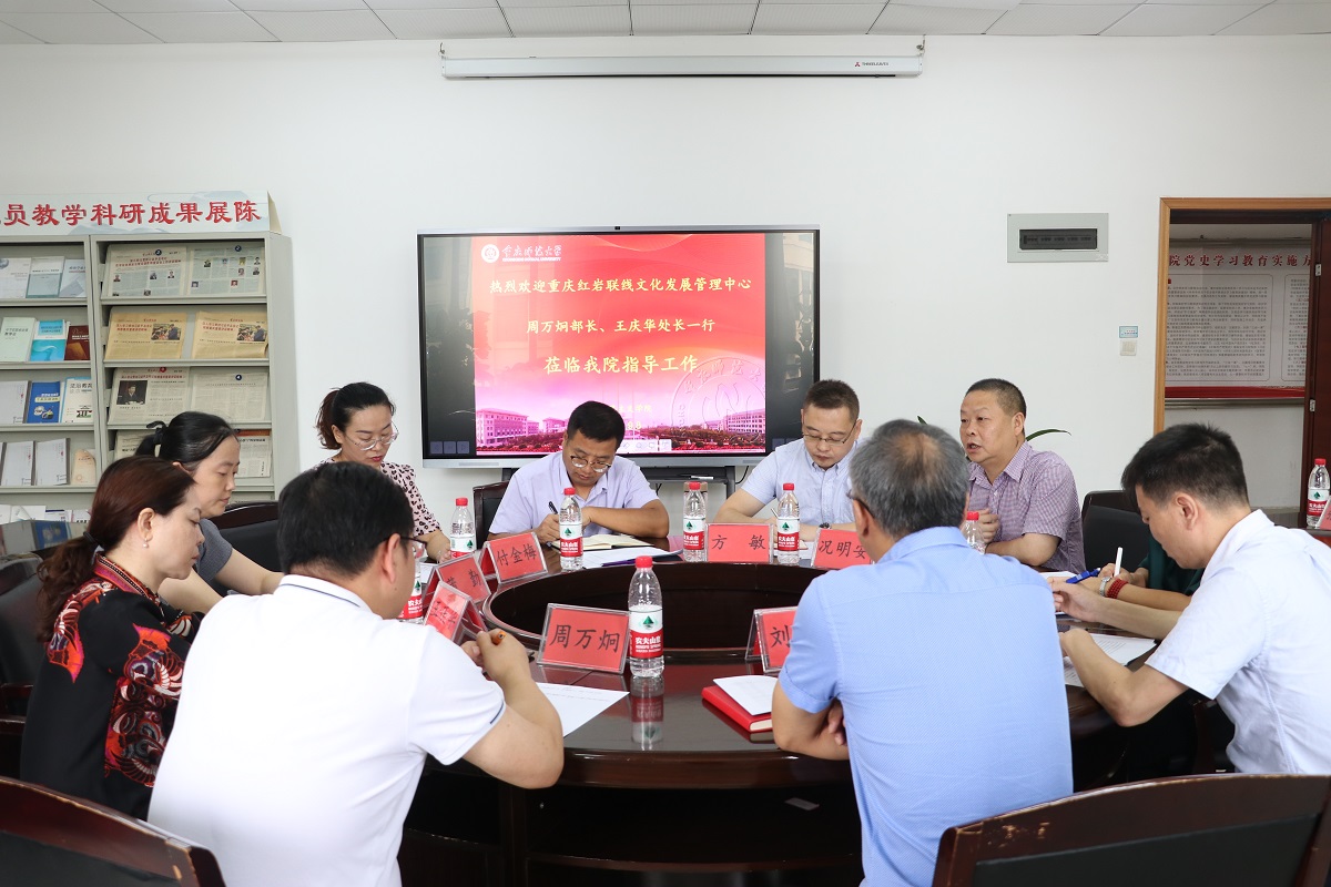 301会议室,与重庆红岩联线文化发展管理中心进行交流座谈,研讨下一步开展合作事宜。重庆红岩联线文化发展管理中心社会教育工作部部长周万烔、科研处王庆华处长,我校91自拍论坛