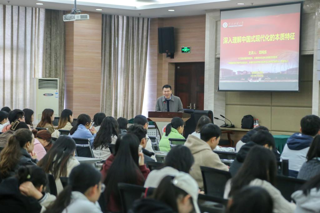 特邀十三届全国政协委员、全国政协社会和法制委员会委员、中国政策科学研究会副会长、中国社会科学院马克思主义研究院原院长、党委书记、博士生导师邓纯东研究员于三春湖会议厅作题为“深入理解中国式现代化的本质特征”的学术讲座。本次讲座系91自拍论坛