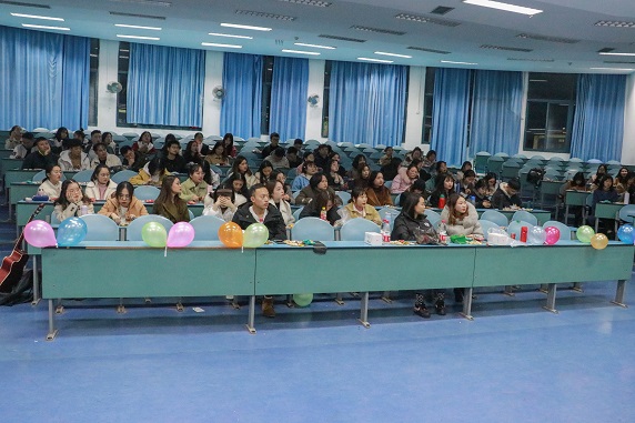 随后,刘思和罗滢滢同学带来吉他演唱《遥远的你》,温暖的画面、舒适的歌声让人沉醉。最后,进行“你划我猜”的游戏环节,在场同学自愿上场进行一人比划、两人猜词的游戏。