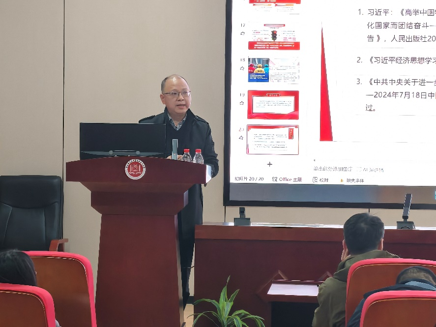 在汇贤楼106会议室开展2025-2026学年秋季学期教学观摩活动。活动特邀孙贝和张艺立两位青年博士进行教学展示,学院领导班子成员及全体教职工参加。活动由形势与政策教研室主任蒋明伟副教授主持。