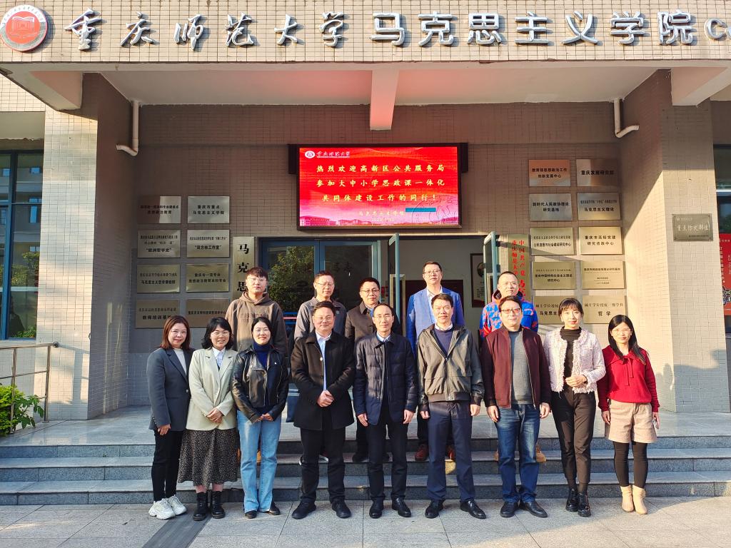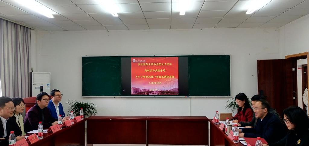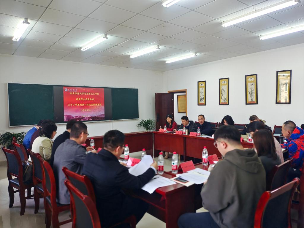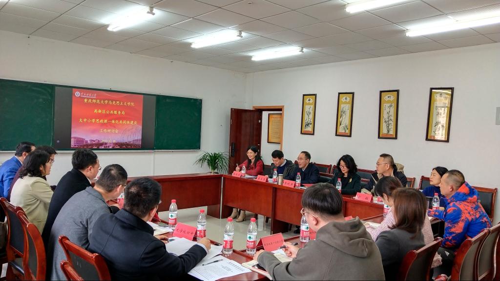 与重庆市高新区公共服务局于汇贤楼309会议室召开了“大中小学思政课一体化共同体建设”工作研讨会。高新区公共服务局教育管理科科长兼小学思政教研员付有能、中学部主任兼中学思政教研员冯志刚、高中思政兼中小学劳动教研员谭兰,巴蜀科学城中学、91自拍论坛