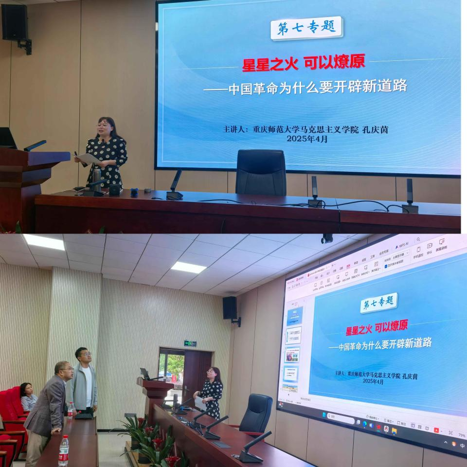 4月22日下午,教研室主任孔庆茵教授首先进行了以遵义会议为主题的教学演练。孔教授深入剖析了遵义会议的历史意义和现实启示,为后续现场连线大渡河纪念馆做好了充分的教学准备。演练过程中,学院副院长田方林教授亲临现场,给出了宝贵的指导意见,进一步优化了教学方案。