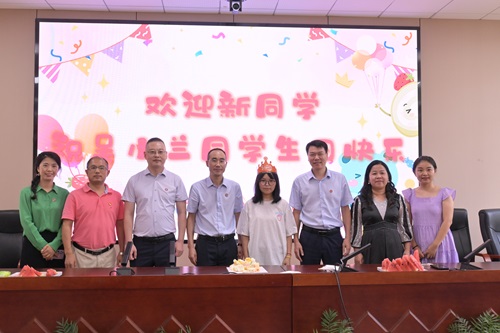 为吴小兰同学举办了一场别出生面的生日会。学院党委书记李晓燕,党委副书记、执行院长姜土生,党委副书记方敏等领导和2024级本科生辅导员来到生日会现场为吴小兰庆生。老师们向该生传达了真挚的祝福与希冀,愿她心怀壮志、不畏风雨,追随智慧与信仰的光芒,在漫漫学海中以梦为航、书写灿烂人生。