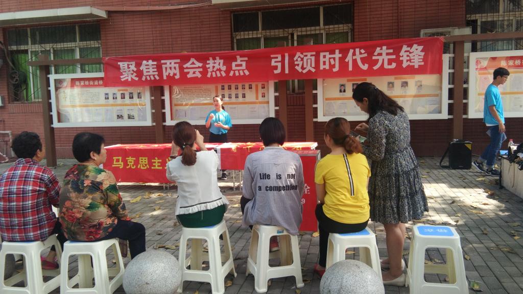 在陈家桥桥东社区为居民群众举办了“聚焦两会热点 引领时代先锋”两会理论宣讲活动。参与本次活动的有91自拍论坛