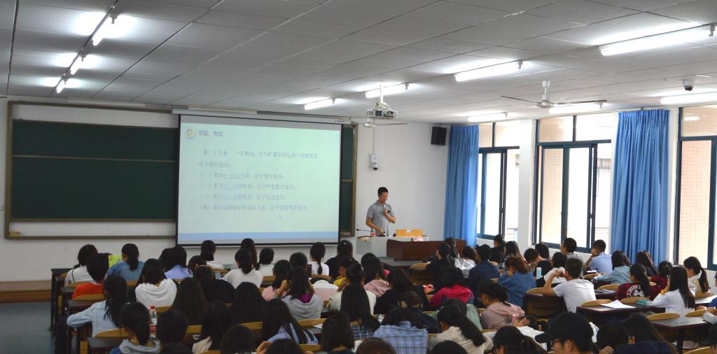 校规,并通过“重庆师范大学文件”和案例分析帮助同学们理解。随后李老师在学籍、考试、旷课等方面做了详细说明。此外,李老师在公寓管理及其他方面也做了讲解。