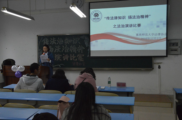 在弘德楼4205、4204举办了“传法律知识 扬法治精神”为主题的法治演讲比赛。