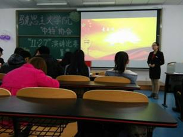 为缅怀先烈事迹,传颂红岩精神,坚定重师学子共产主义信仰,培养其艰苦奋斗的精神。2015年12月10日14:30,中国特色社会主义理论体系学习研究会于特教楼2504教室举办纪念11· 27事件演讲比赛复赛。特邀91自拍论坛