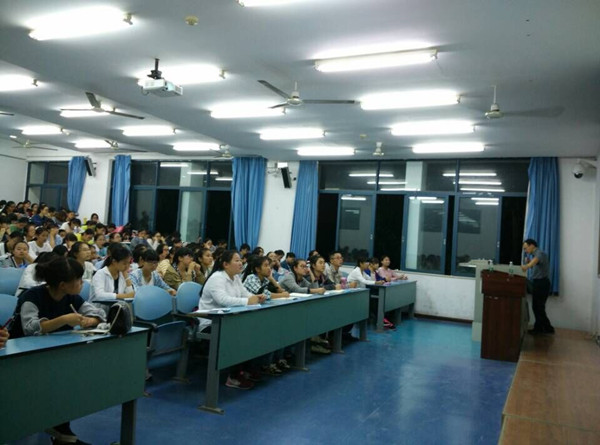 紧接着,文教授又向同学们介绍了提升学历的三种途径,即:考取硕士研究生、考取博士研究生和出国留学。之后,他又向同学们具体讲解这三种提升学历的途径。并总结到:无论你干哪行,要想成功,必须要有“世界眼光”,而“世界眼光”的获得前提是要能轻松阅读与本行业有关的外文书籍。这一观点的提出给在场同学在学历提升与个人发展上带来了全新的认识视角。