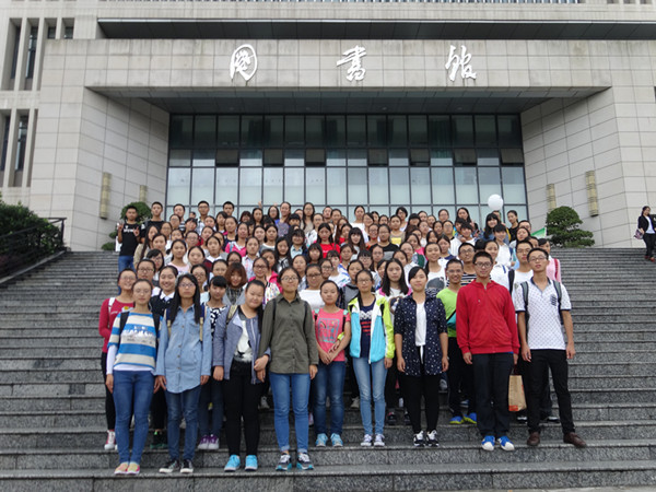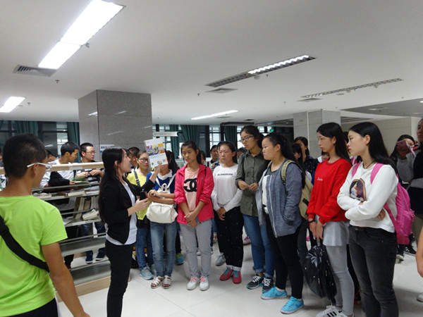 16时许,2015级全体新生于图书馆门前集合整队,静候解说员的到来。解说员到来后,首先向同学们详细解读了图书馆的入馆要求。约16时30分,解说员带领同学们进入图书馆,通过参观,使同学们解馆内设置和布局。此外,解说员还为同学们细致讲解了图书馆的馆藏情况。