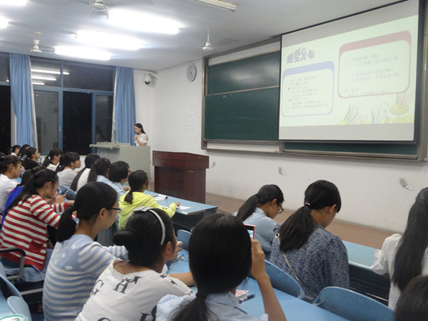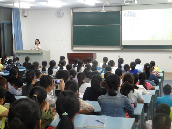 19时30分,主持人宣布指导会正式开始。首先,梁佳苗以提问的方式拉开了本次交流会的序幕。在场大多数同学纷纷表示对英语四级考试毫无了解。“知己知彼,方能百战百胜。我们只有掌握了充分的考试信息,了解考试动向,才能事半功倍,达到更好的复习效果,”梁佳苗学姐如是说。紧接着,她为2015级同学细致地讲解了英语四级考试的题型及答题技巧。她强调:答题时要合理分配时间,仔细读题意,尽量少犯过失性错误。随后,她提醒同学们勿碰考试雷区,切忌死记单词、盲目复习。此外,她为同学们提出了一些切实可行的建议:第一,制定复习计划,专心学习;第二,选择在合适的地点和时间进行复习;第三,在平日学习中,积累常见短语、句型、名人名言以及优秀范文;第四,运用正确的解题技巧。最后,她预祝全体同学考试成功。精彩的讲解赢得了同学们的阵阵掌声。