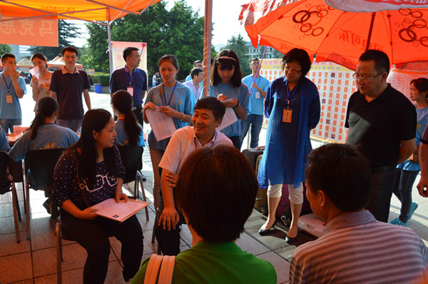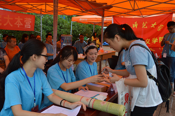 同时,学院实行教师值班制度,每日安排两名教师在迎新大本营值班。学院党委书记万朝晖、院长陈洪、党委副书记姜土生、团总支书记马小又在迎新大本营与新生家长进行深入的沟通交流,解答家长关于孩子的学业、成长以及考研就业问题。此外,学院还专设党员模范先锋岗,采取党员值班制度,解答新生疑惑以及接待新生家长。